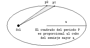 El cuadrado del período de revolución de los planetas alrededor del Sol es proporcional al cubo de la longitud del semieje mayor de la elipse que describen.
